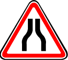 Предупреждает о приближении к сужению проезжей части (участку, где уменьшается число полос движения в данном направлении) или к линиям разметки 1.1 или 1.11, разделяющим транспортные потоки противоположных направлений;